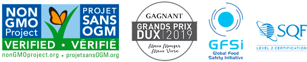 Certification de contrôle qualité reconnue selon les normes internationales de qualité SQF – GFSI Global Food Safety Initiative.