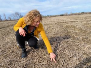 Plusieurs actions sont faites pour minimiser notre empreinte environnementale, dont le travail minimum du sol. À chaque fois que le sol est travaillé et retourné, des gaz à effet de serre se dégagent naturellement du sol. Ainsi, minimiser le travail du sol permet de réduire les émissions de gaz à effet de serre : nous semons sur le sol gelé, sans que celui-ci soit retravaillé, et à même le paillis resté sur le sol de la culture précédente. Cette façon de faire permet de ne pas déranger la vie microbienne et les insectes dans le sol. Autrement dit, les maisons et canaux construits par les insectes du sol ne sont pas détruits, ce qui contribue à garder une vie active dans le sol et une biodiversité par le fait même. Nous travaillons avec les forces de la nature en semant tôt et en intervenant le moins possible dans le processus de maturation du plant de caméline. Cette précocité au printemps nous permet d’avoir des champs fleuris en juin, pour nourrir les abeilles que nous intégrons à notre culture, en améliorant la pollinisation de nos champs. Travailler dans le respect de la nature est une fierté.