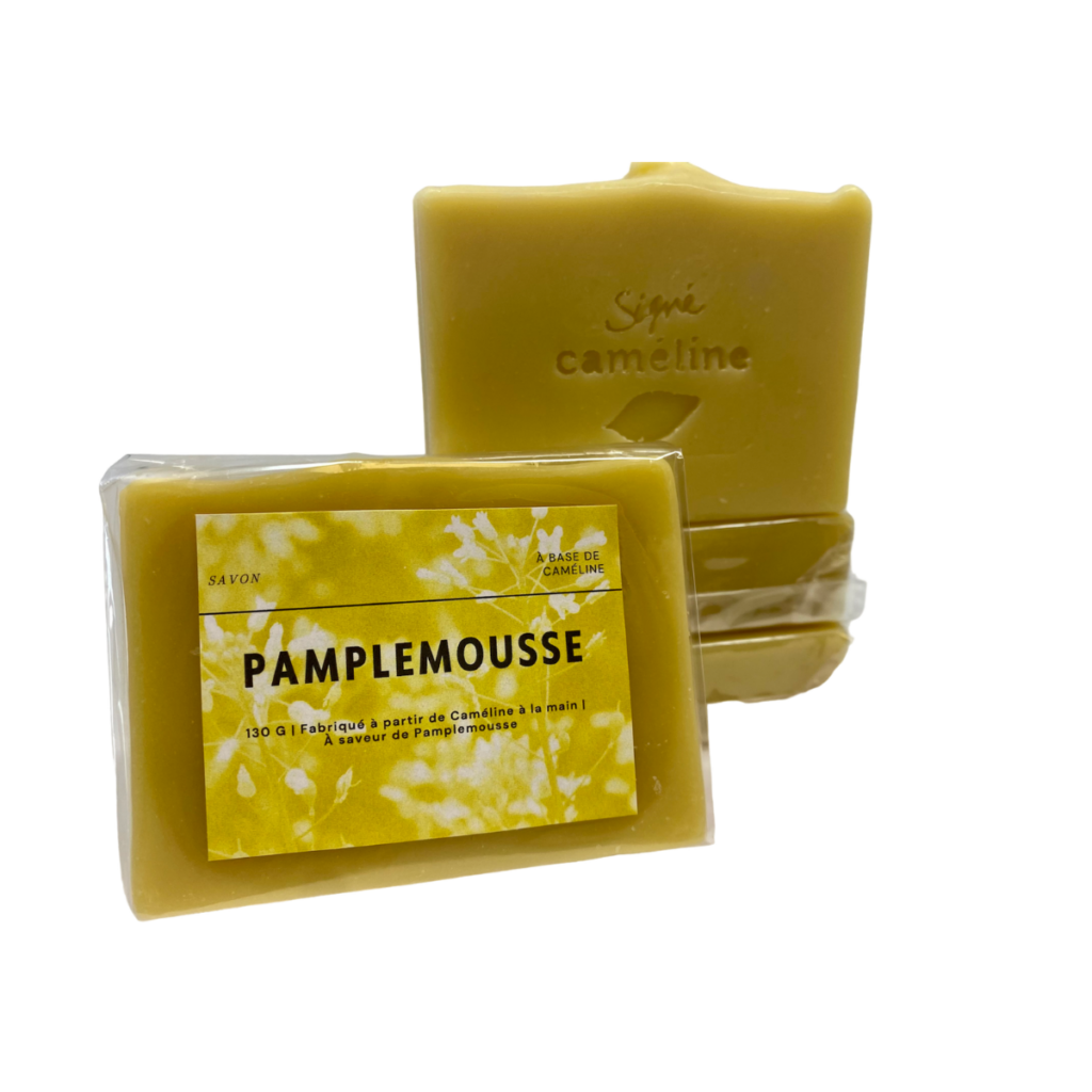 Nouveauté chez Signé Caméline; un savon à la fragrance de pamplemousse. Ce savon vous charmera et rendra votre peau douce tout en y laissant une sensation de fraicheur. Il est fabriqué avec des produits de grande qualité en collaboration avec la compagnie québécoise Huldra . Nous l’avons reçu juste à temps pour la fête des mamans et pour les femmes qui aimeraient s’offrir une petite douceur du printemps. Il est également destiné aux hommes qui aiment l’odeur de pamplemousse.